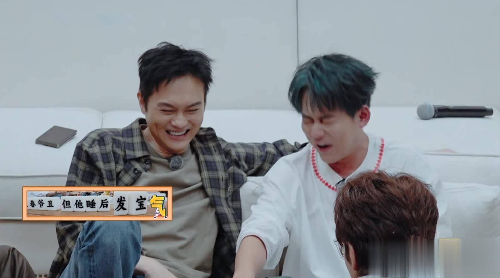 大湾区哥哥和厚米团玩谐音文字麻将第一轮,苏醒、张智霖摸到“春”字时,因现有的牌里有个“爷”,还有个“丑”,两人就想开开陈小春玩笑,初步组成“春爷丑,但他睡后发宝气……”的句子。之后一直往春爷“丑”方向组合,一边组一边笑,搞得其他人都很好奇他们究竟搞的是什么玩意?真有这么好笑?