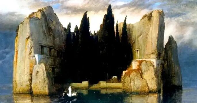 (致敬阿诺德·伯克林的神秘主义画作《死亡之岛》,舟上载的是死者)