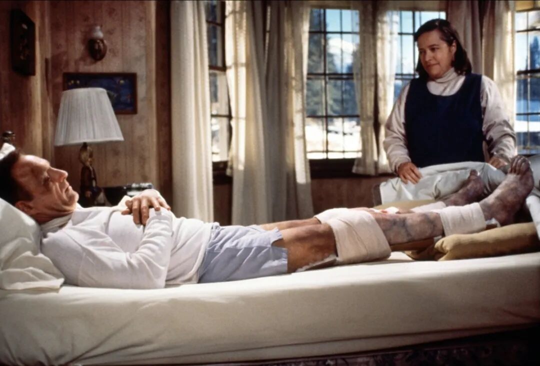 至此,悬疑影迷不难联想到希区柯克的《蝴蝶梦》或罗伯·莱纳的《危情十日》。《蝴蝶梦》里,新夫人总能在大宅中感受到丈夫前妻丽贝卡的影子。《危情十日》的故事也发端于一场车祸,作家住进“好心”的护士家里,局面随即完全失控。